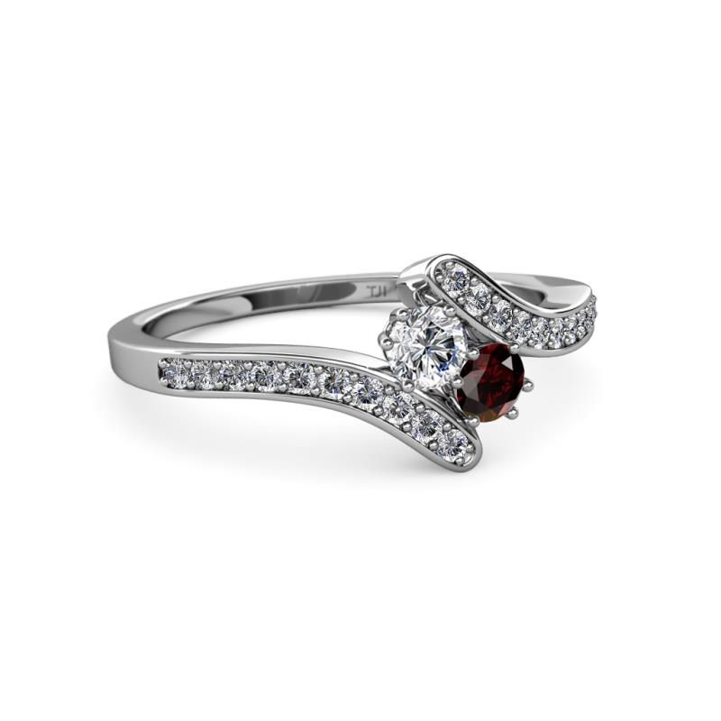 Round Diamond and Red Garnet 2 Stone with Side Diamonds Bypass Engagement Ring 0.73 Carat tw in 14K White Gold. More Details ...