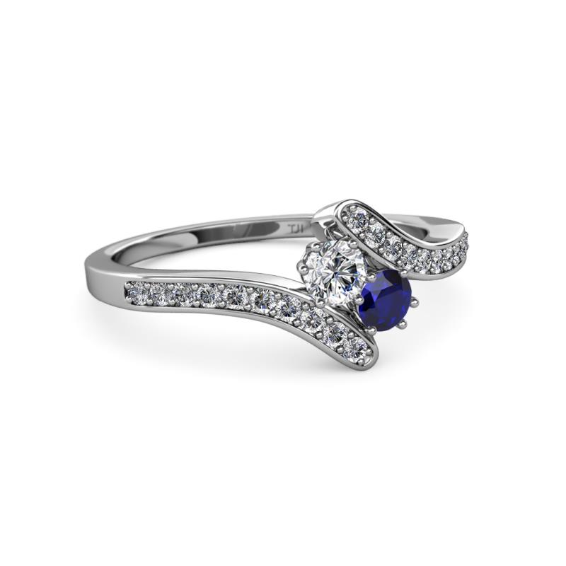 Round Lab Grown Diamond and Blue Sapphire 2 Stone with Side Diamonds Bypass Engagement Ring 0.71 ctw in 14K White Gold More Details ...
