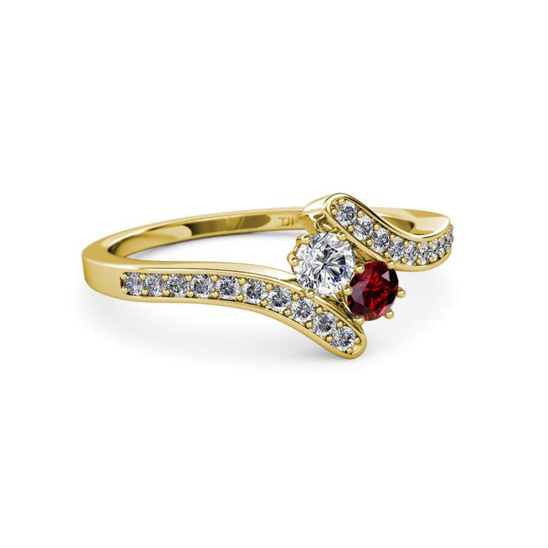 Designed with a meaningful expression of love, this Ring have mesmerizing combination of Lab Grown Diamond & Ruby which represents you & your loved one embraced by fascinating Diamond bypass shank symbolizing that your life revolves around each other.