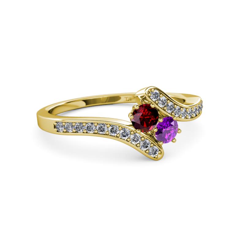 Ruby and Amethyst 2 Stone with Side Diamonds Womens Bypass Engagement Ring 0.69 ctw 14K Yellow Gold More Details ...