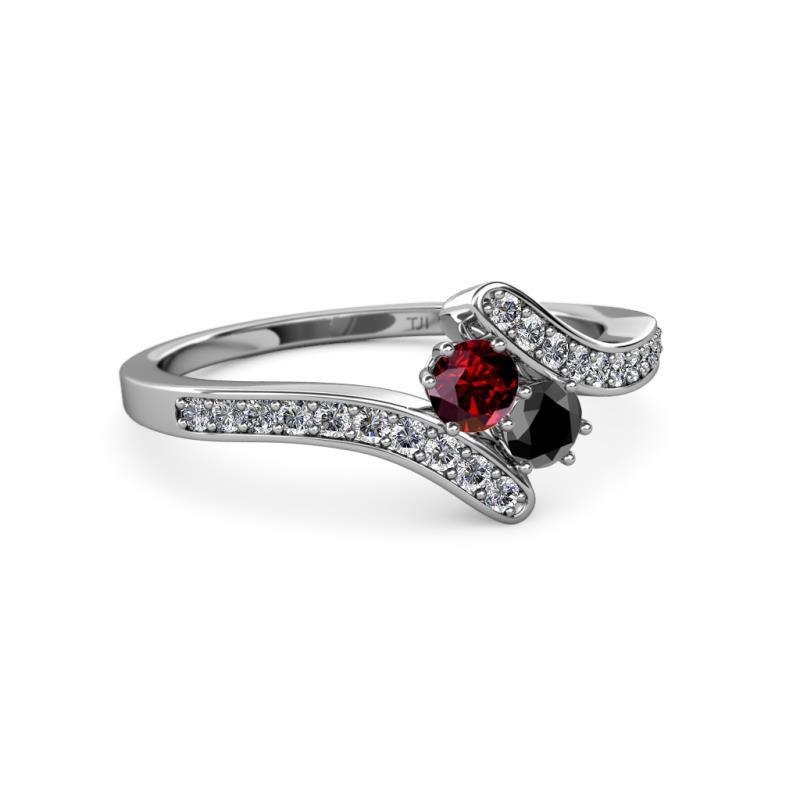 Designed with a meaningful expression of love, this Ring have mesmerizing combination of Ruby & Black Diamond which represents you & your loved one embraced by fascinating Diamond bypass shank symbolizing that your life revolves around each other.