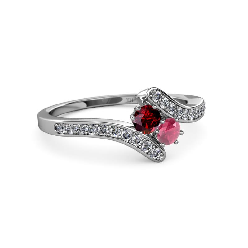 Ruby and Rhodolite Garnet 2 Stone with Side Diamonds Womens Bypass Engagement Ring 0.74 ctw 14K White Gold More Details ...