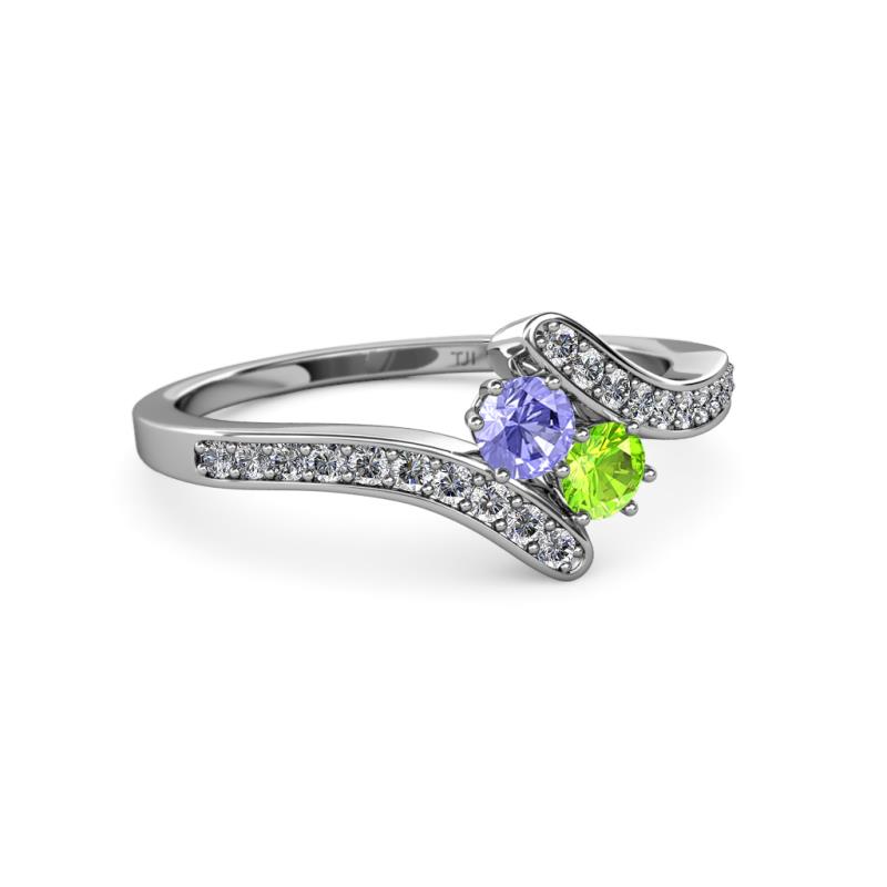 Tanzanite and Peridot 2 Stone with Side Diamonds Womens Bypass Engagement Ring 0.73 ctw 14K White Gold More Details ...