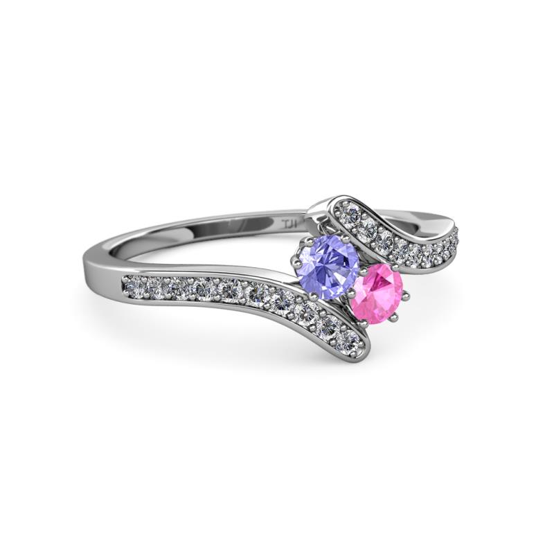 Tanzanite and Pink Sapphire 2 Stone with Side Diamonds Womens Bypass Engagement Ring 0.71 ctw 14K White Gold More Details ...