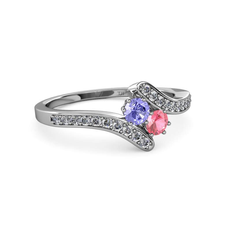 Tanzanite and Pink Tourmaline 2 Stone with Side Diamonds Womens Bypass Engagement Ring 0.68 ctw 14K White Gold More Details ...
