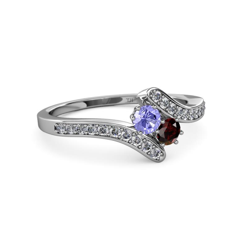 Tanzanite and Red Garnet 2 Stone with Side Diamonds Womens Bypass Engagement Ring 0.73 ctw 14K White Gold More Details ...