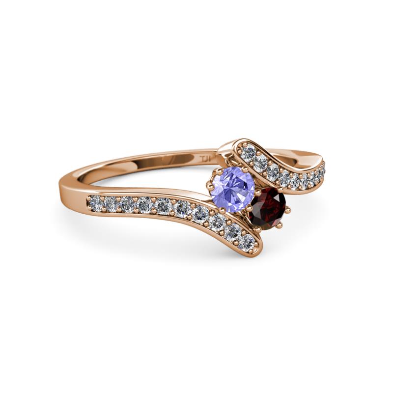 Tanzanite and Red Garnet 2 Stone with Side Diamonds Womens Bypass Engagement Ring 0.73 ctw 14K Rose Gold More Details ...