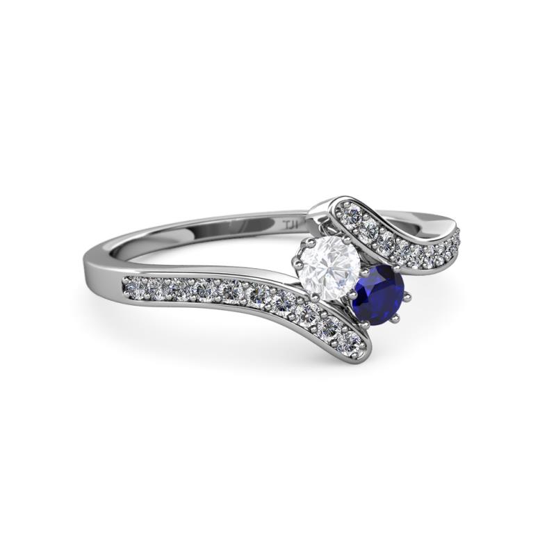 Designed with a meaningful expression of love, this Ring have mesmerizing combination of White Sapphire & Blue Sapphire which represents you & your loved one embraced by fascinating Diamond bypass shank symbolizing that your life revolves around each other.