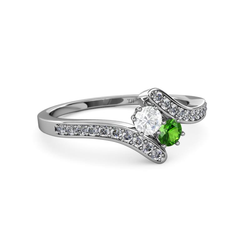 White Sapphire and Green Garnet 2 Stone with Side Diamonds Womens Bypass Engagement Ring 0.74 ctw 14K White Gold More Details ...