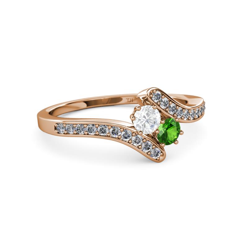 Designed with a meaningful expression of love, this Ring have mesmerizing combination of White Sapphire & Green Garnet which represents you & your loved one embraced by fascinating Diamond bypass shank symbolizing that your life revolves around each other.
