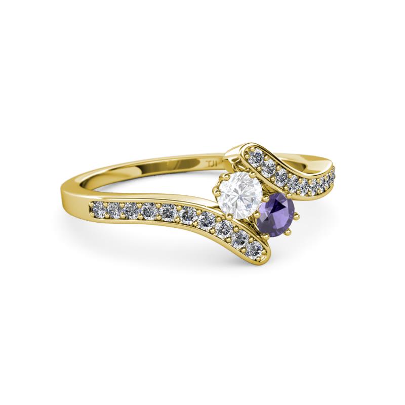 Designed with a meaningful expression of love, this Ring have mesmerizing combination of White Sapphire & Iolite which represents you & your loved one embraced by fascinating Diamond bypass shank symbolizing that your life revolves around each other.