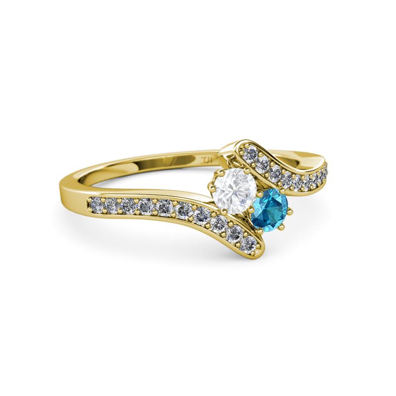 White Sapphire and London Blue Topaz 2 Stone with Side Diamonds Womens Bypass Engagement Ring 0.73 ctw 14K Yellow Gold More Details ...