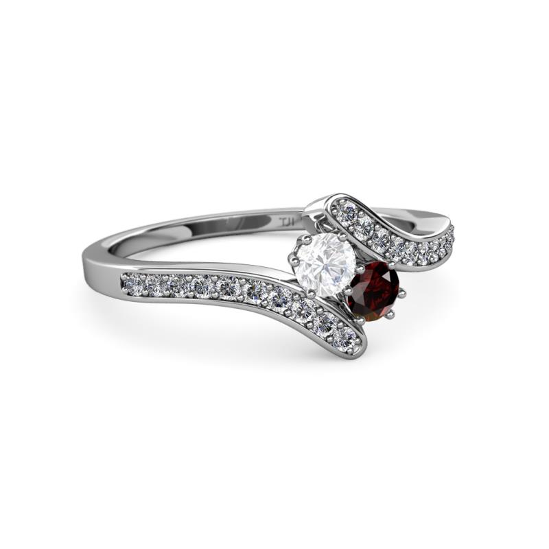 White Sapphire and Red Garnet 2 Stone with Side Diamonds Womens Bypass Engagement Ring 0.74 ctw 14K White Gold More Details ...