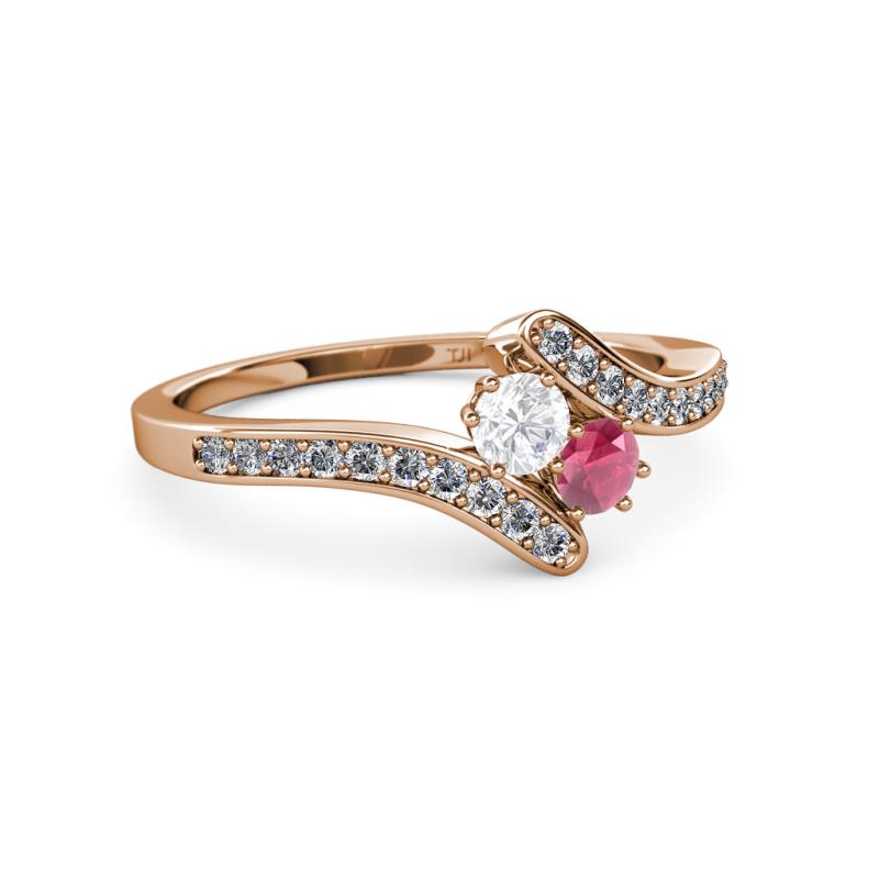 Designed with a meaningful expression of love, this Ring have mesmerizing combination of White Sapphire & Rhodolite Garnet which represents you & your loved one embraced by fascinating Diamond bypass shank symbolizing that your life revolves around each other.