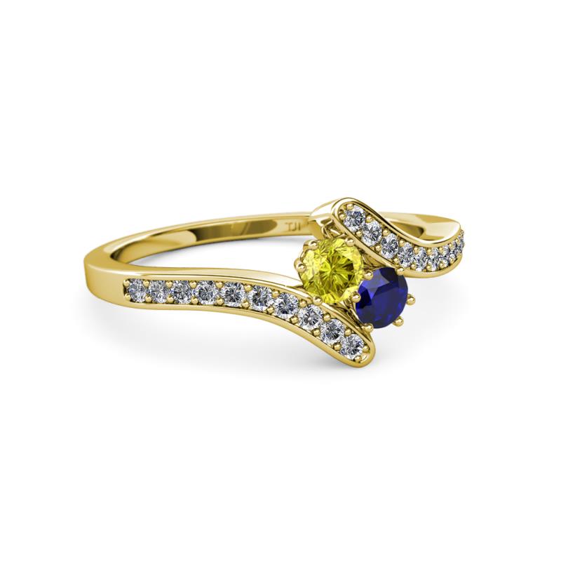 Designed with a meaningful expression of love, this Ring have mesmerizing combination of Yellow Diamond & Blue Sapphire which represents you & your loved one embraced by fascinating Diamond bypass shank symbolizing that your life revolves around each other.