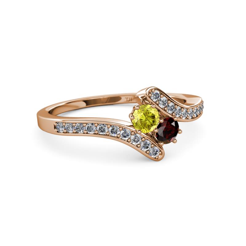Yellow Diamond and Red Garnet 2 Stone with Side Diamonds Womens Bypass Engagement Ring 0.73 ctw 14K Rose Gold More Details ...