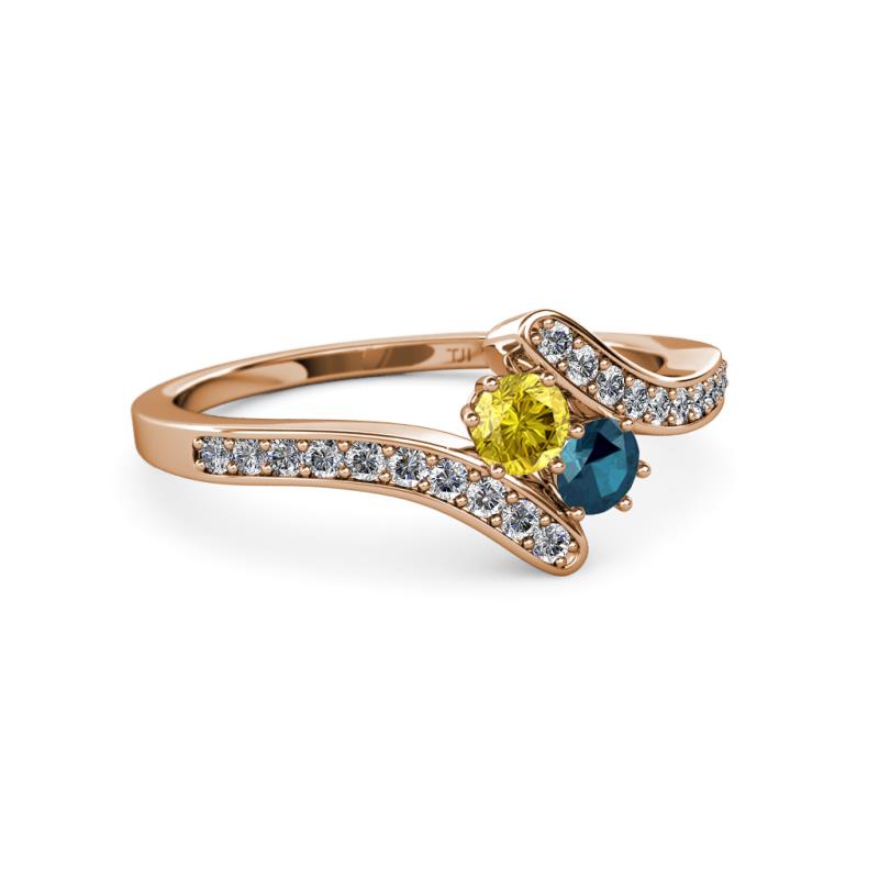 Yellow Sapphire and Blue Diamond 2 Stone with Side Diamonds Womens Bypass Engagement Ring 0.71 ctw 14K Rose Gold More Details ...