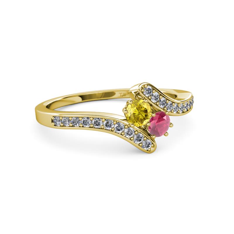Yellow Sapphire and Rhodolite Garnet 2 Stone with Side Diamonds Womens Bypass Engagement Ring 0.74 ctw 14K Yellow Gold More Details ...