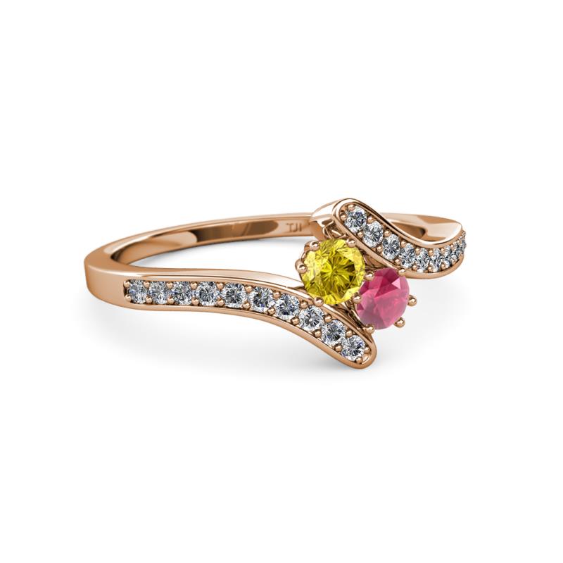Yellow Sapphire and Rhodolite Garnet 2 Stone with Side Diamonds Womens Bypass Engagement Ring 0.74 ctw 14K Rose Gold More Details ...