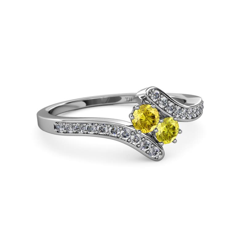Yellow Sapphire and Yellow Diamond 2 Stone with Side Diamonds Womens Bypass Engagement Ring 0.71 ctw 14K White Gold More Details ...