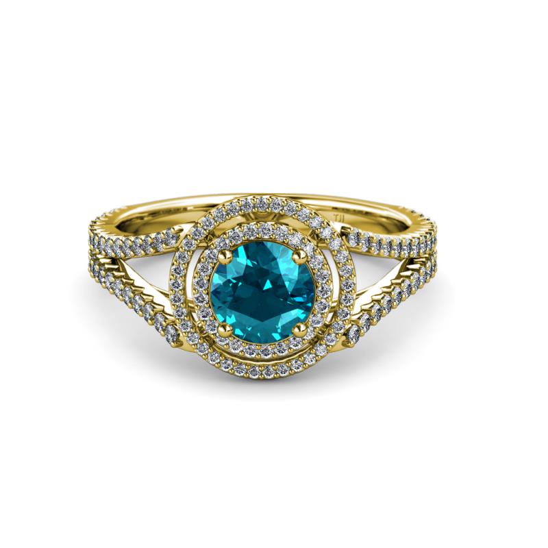 London Blue Topaz and Diamond Double Womens Halo Engagement Ring 1.42 ctw 18K Yellow Gold More Details ...