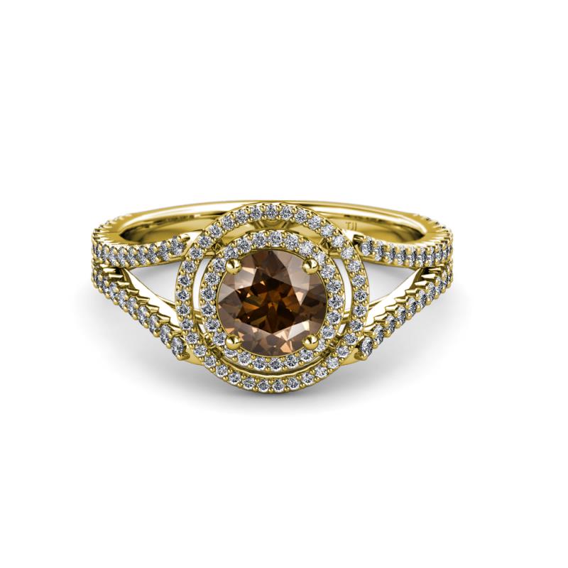 Smoky Quartz and Diamond Double Womens Halo Engagement Ring 1.37 ctw 18K Yellow Gold More Details ...
