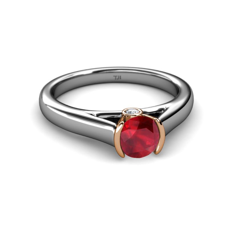 Ruby and Diamond Two Tone Womens Solitaire Plus Engagement Ring 0.98 ctw 14K White Gold More Details ...