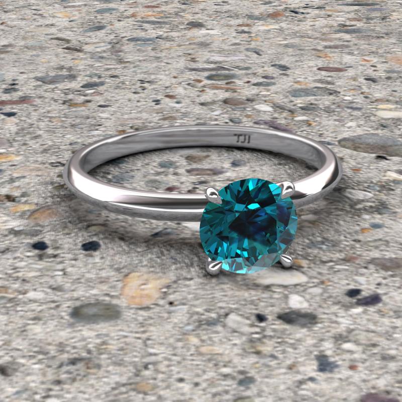 Round Blue Diamond 0.90 ctw Four Prong Knife Edge Women Solitaire Engagement Ring 14K White Gold More Details ...