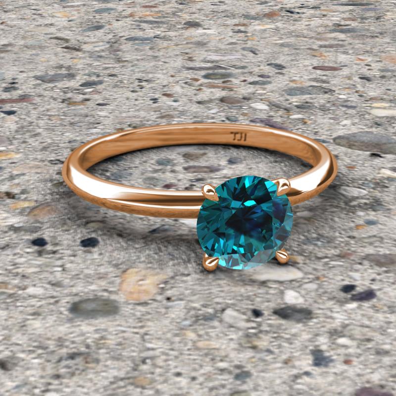 Round Blue Diamond 0.90 ctw Four Prong Knife Edge Women Solitaire Engagement Ring 18K Rose Gold More Details ...