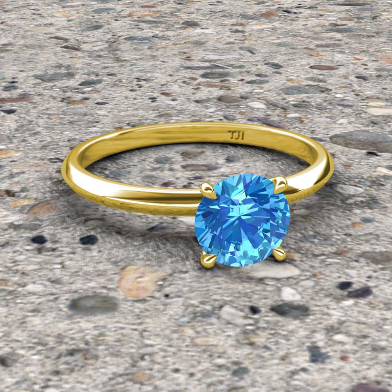 Prepare your eyes for the luscious visual feast in this magnificient Round Blue Topaz engagement ring beautifully crafted in 18K Yellow Gold and held in tiger claw setting that adds the perfect touch to this timeless beauty.