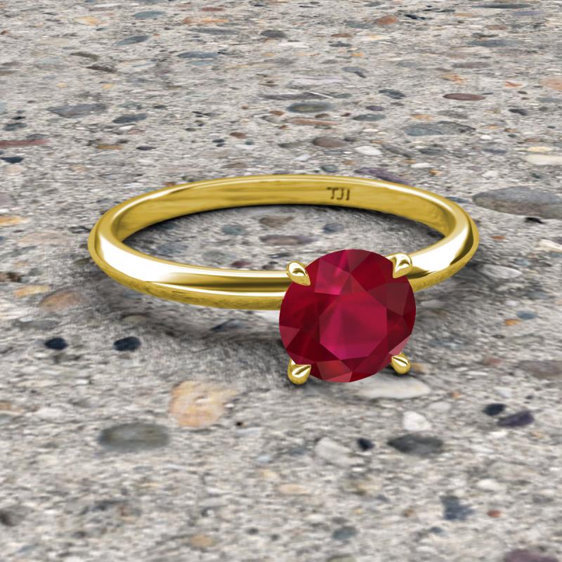 Round Ruby 0.95 ctw Four Prong Knife Edge Women Solitaire Engagement Ring 18K Yellow Gold More Details ...