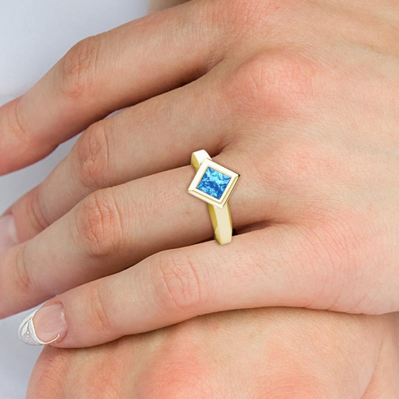 This Solitaire Ring have Princess Cut Blue Topaz surrounded elegantly by bezel setting making it more Graceful in its Simplicity.