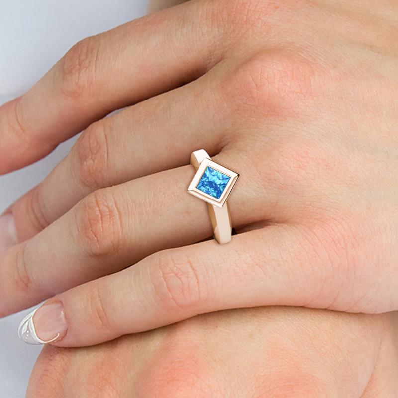 This Solitaire Ring have Princess Cut Blue Topaz surrounded elegantly by bezel setting making it more Graceful in its Simplicity.