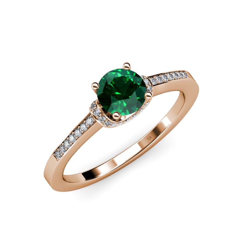 • 0.88 ct tw Emerald and Diamond Engagement Ring.