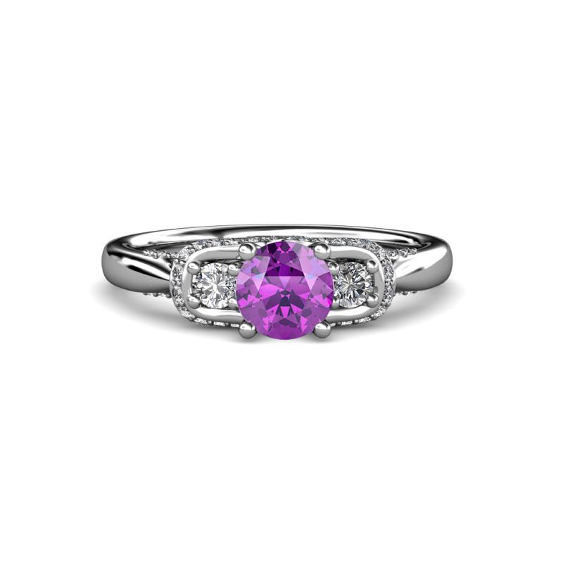 Amethyst and Diamond Womens Three Stone Engagement Ring 1.55 ctw 18K White Gold More Details ...