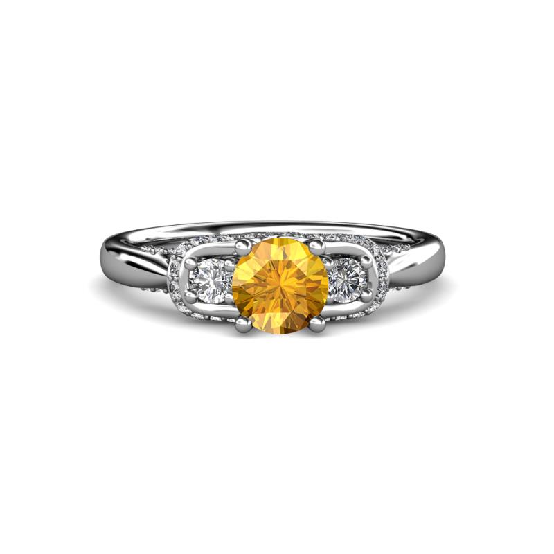Citrine and Diamond Womens Three Stone Engagement Ring 1.55 ctw Platinum More Details ...