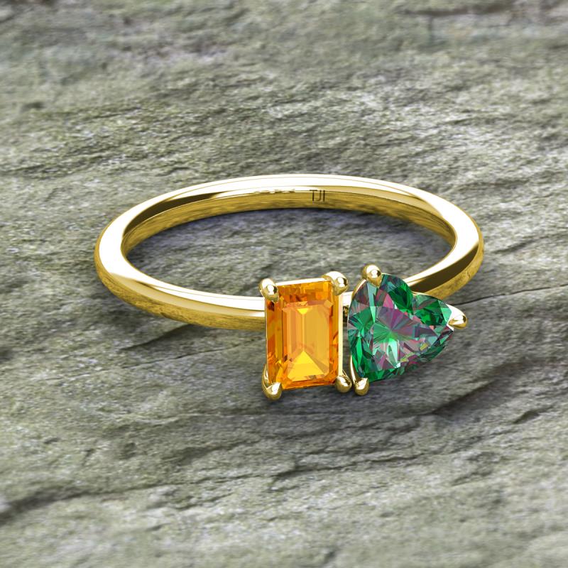 Simple and beautiful, this enchanting 2 Stone Duo Ring flaunting an Emerald Shape Citrine dazzling along with Heart Shape Lab Created Alexandrite are perfect for the women who have a modern outlook and are willing to be unique.