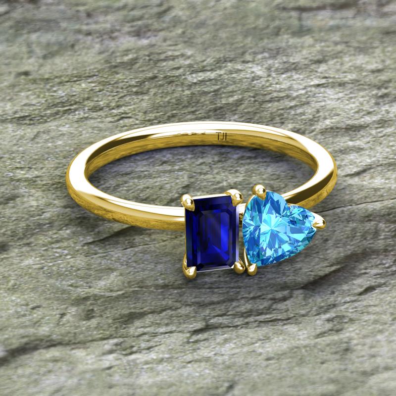 Simple and beautiful, this enchanting 2 Stone Duo Ring flaunting an Emerald Shape Lab Created Blue Sapphire dazzling along with Heart Shape Blue Topaz are perfect for the women who have a modern outlook and are willing to be unique.