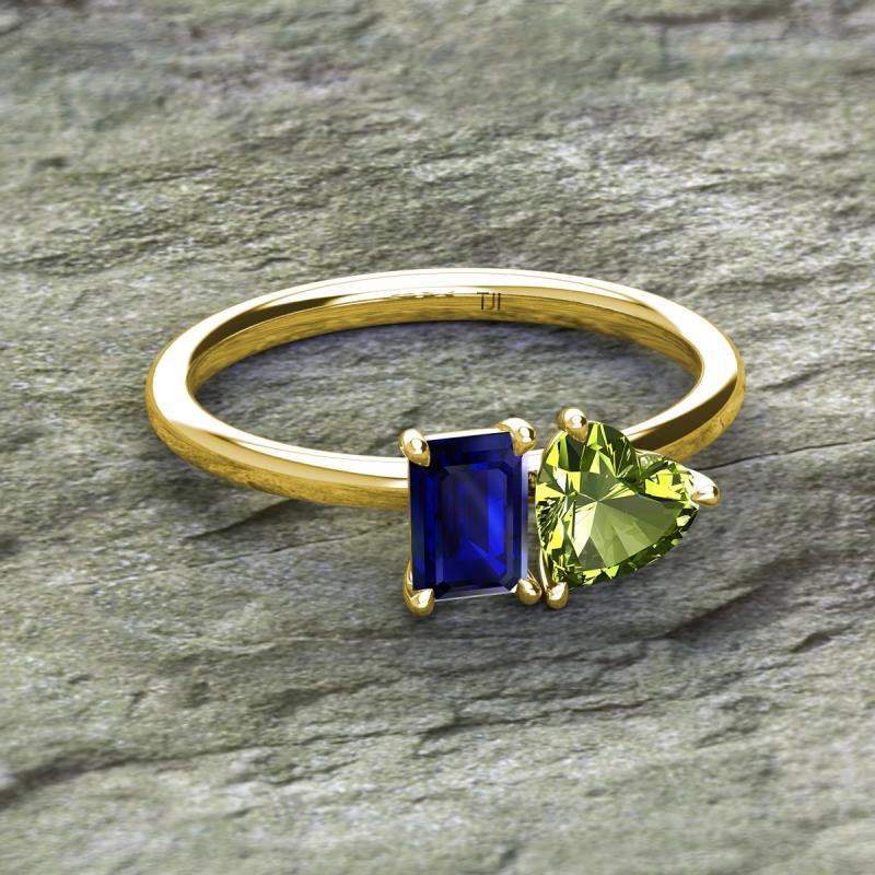 Emerald Shape Lab Created Blue Sapphire & Heart Shape Peridot 2.35 ctw Four Prong Womens 2 Stone Duo Engagement Ring 14K Yellow Gold More Details ...