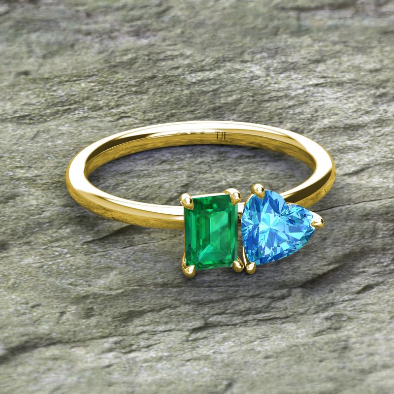 Simple and beautiful, this enchanting 2 Stone Duo Ring flaunting an Emerald Shape Lab Created Emerald dazzling along with Heart Shape Blue Topaz are perfect for the women who have a modern outlook and are willing to be unique.