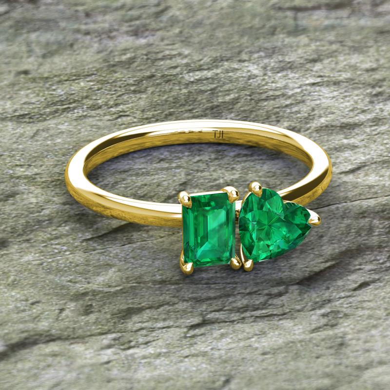 Simple and beautiful, this enchanting 2 Stone Duo Ring flaunting an Emerald Shape Lab Created Emerald dazzling along with Heart Shape Lab Created Emerald are perfect for the women who have a modern outlook and are willing to be unique.