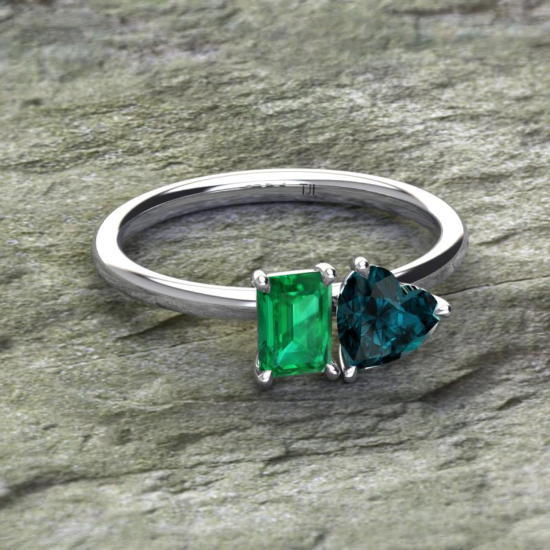 Simple and beautiful, this enchanting 2 Stone Duo Ring flaunting an Emerald Shape Lab Created Emerald dazzling along with Heart Shape London Blue Topaz are perfect for the women who have a modern outlook and are willing to be unique.