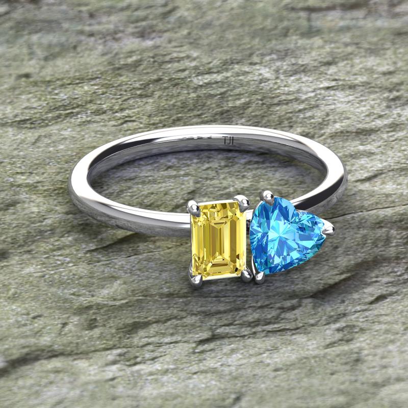 Simple and beautiful, this enchanting 2 Stone Duo Ring flaunting an Emerald Shape Lab Created Yellow Sapphire dazzling along with Heart Shape Blue Topaz are perfect for the women who have a modern outlook and are willing to be unique.