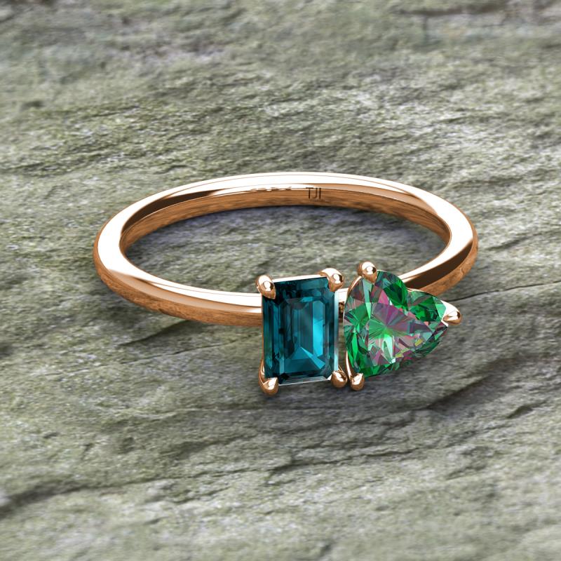 Emerald Shape London Blue Topaz & Heart Shape Lab Created Alexandrite 2.05 ctw Four Prong Womens 2 Stone Duo Engagement Ring 18K Rose Gold More Details ...