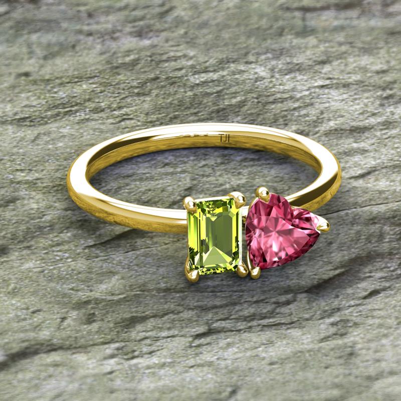 Emerald Shape Peridot & Heart Shape Pink Tourmaline 1.90 ctw Four Prong Womens 2 Stone Duo Engagement Ring 10K Yellow Gold More Details ...