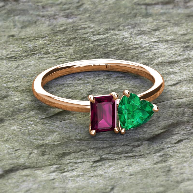Emerald Shape Rhodolite Garnet & Heart Shape Lab Created Emerald 2.05 ctw Four Prong Womens 2 Stone Duo Engagement Ring 18K Rose Gold More Details ...