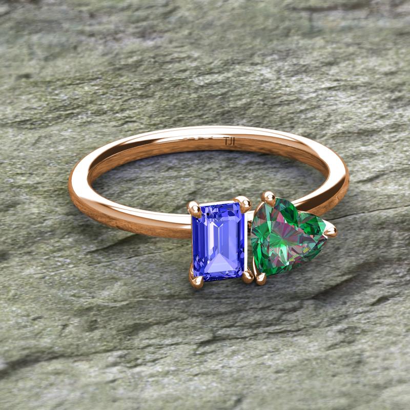 Simple and beautiful, this enchanting 2 Stone Duo Ring flaunting an Emerald Shape Tanzanite dazzling along with Heart Shape Lab Created Alexandrite are perfect for the women who have a modern outlook and are willing to be unique.