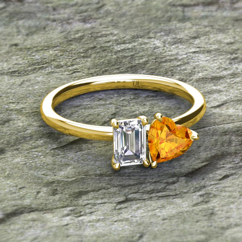 Simple and beautiful, this enchanting 2 Stone Duo Ring flaunting an IGI Certified Emerald Shape Lab Grown Diamond dazzling along with Heart Shape Citrine are perfect for the women who have a modern outlook and are willing to be unique.