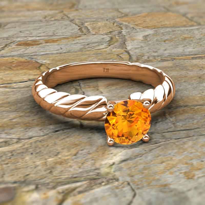 This Elegant Solitaire Engagement Ring in 14K Rose Gold features a Shank wrapping around the Center Citrine with Twisted Rope design on the Band which Symbolize your endless Love for each other.
