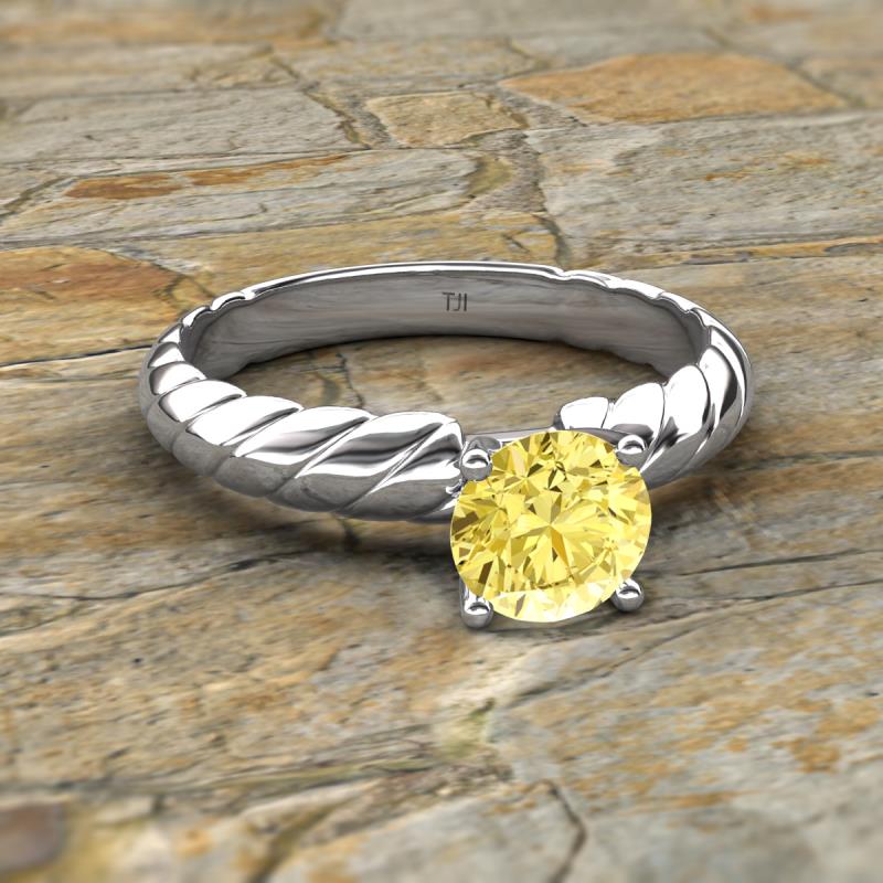 This Elegant Solitaire Engagement Ring in Platinum features a Shank wrapping around the Center Lab Created Yellow Sapphire with Twisted Rope design on the Band which Symbolize your endless Love for each other.